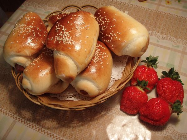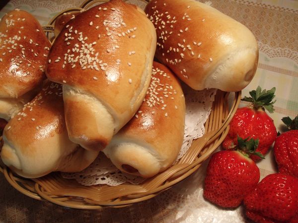 材料:高筋粉 600g,牛奶 250ml,山茶油30g,白糖 30g,鹽 4g,黃油 50g,雞蛋 一只,高耐糖面包酵母 5g。