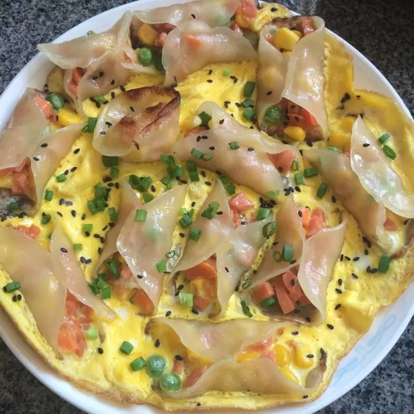 雞蛋 / 餃子皮 / 香腸 / 胡蘿卜 / 青豆