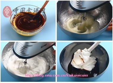 檸檬汁,將蛋白打至8分發(fā),中間分三次加入細砂糖(參見蛋白的打發(fā))。