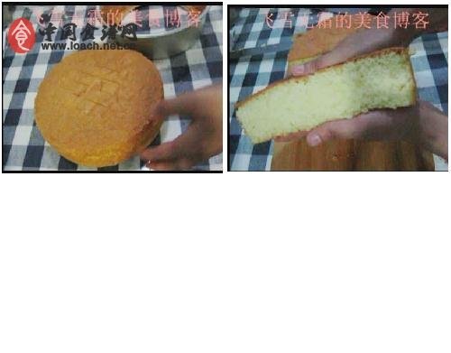 10,表面上色后而且蛋糕基本回縮完畢,取出來。