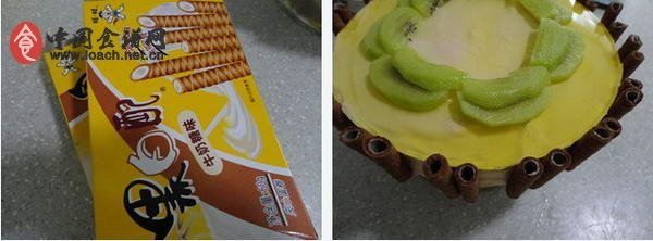 奶油蛋糕都要用戚風(fēng)蛋糕做胚。戚風(fēng)蛋糕的配方我做過好幾種,這個方子是我目前最喜歡的,最常用的。蛋糕烤得不錯,只是脫模時不小心把底部弄花了一塊,反正要加慕斯餡,關(guān)系不大。做慕斯蛋糕必須用到的吉利丁片,超市買不到。市場上的