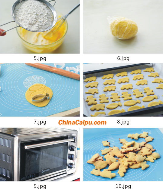7、 取出冷藏好的面團(tuán)搟成約3毫米的厚度,用模具壓出