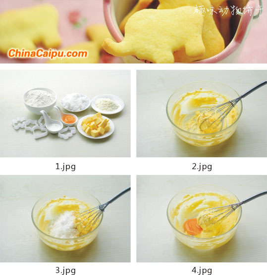 5、 將面粉和奶粉混合均勻,篩入打發(fā)好的黃油中,再加入牛奶拌勻。