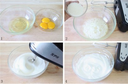 1.3個(gè)蛋黃和2個(gè)蛋白分別分離備用。