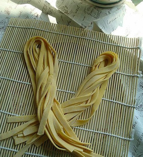 12.搟好的面條抖開,加少許干面粉或者玉米粉防粘連。