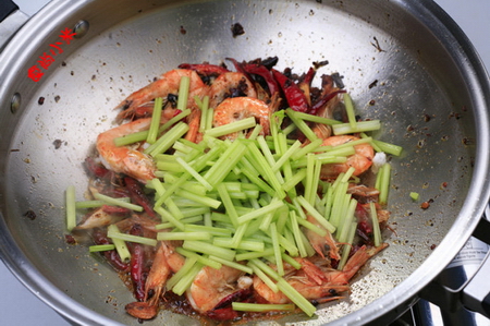 原料:鮮蝦、香芹段、