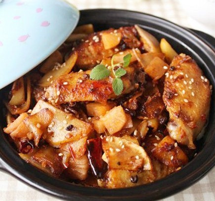 做法:1)雞翅洗凈,在背上化三刀,好入味。2)雞翅碗里放小勺鹽,蔥末,姜末,白酒1小勺3)鍋里不放油,把雞皮的那面放鍋底,小火慢慢煎出油。4)煎成金黃色再翻面,背面也煎成金黃色,此時(shí)鍋里已經(jīng)好多油滲出了。5)雞翅盛出來,鍋里焙出的油不用倒,直接放如切好片的土豆片翻炒成金黃色,有點(diǎn)點(diǎn)焦的感覺。6)鍋里倒一點(diǎn)底油,放入花椒,小火慢慢烹出香味。7)放入干辣椒,蒜片,姜片,翻炒,再加入郫縣豆瓣。8)倒入煎好的雞翅翻炒入味。9)倒入炒好的土豆片,加糖。10)最后放入酸辣蘿卜丁翻炒,出鍋撒上白芝麻,花生碎即可。