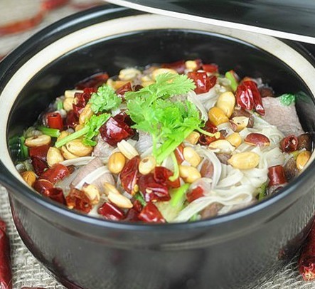 做法:1)辣椒切成小段。2)用漏勺將種子漏掉。3)平底鍋燒熱,轉(zhuǎn)小火,倒油,放入辣椒,小心煸炒。4)花生炒香。5)芝麻炒香。6)豬肉切正方形丁。7)鍋?zhàn)訜裏?,倒油,放入蔥,煸炒。8)放入豬肉丁,煸炒。9)倒入白糯米酒,煸炒。10)倒入一半辣椒。11)倒入一半花生米。12)倒入芝麻。13)煸炒。14)加入鹽。15)煸炒至米酒揮發(fā)。16)砂鍋燒開水,將炒好的肉丁倒入砂鍋內(nèi)。17)蓋蓋子,轉(zhuǎn)中火,煮30分鐘左右,熬制湯汁滋味濃郁。18)放入面條。19)將面條煮熟爛。20)關(guān)火,倒入香油。21)放入香菜。22)攪拌均勻,出鍋即可。23)將剩余的一半花生去掉外皮,灑在面上,辣椒灑在面上,即可。