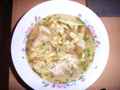 雞精、麻油,放于海碗中,沖入沸水,放如煮好的餛飩,即成了一碗色、香、味俱到的上海小餛飩了。