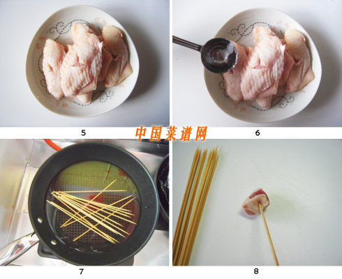 10.在每兩根竹簽子上分別穿上兩個雞翅中。