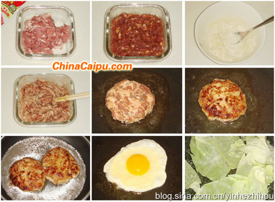 注意事項(xiàng):制作有一定厚度的漢堡排,盡量使用先煎表面再加水燜煮的方法,充分利用水