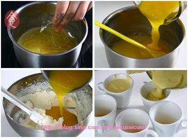 鮮奶油打發(fā),與上料混合均勻倒入模具冷藏至凝固后食用。