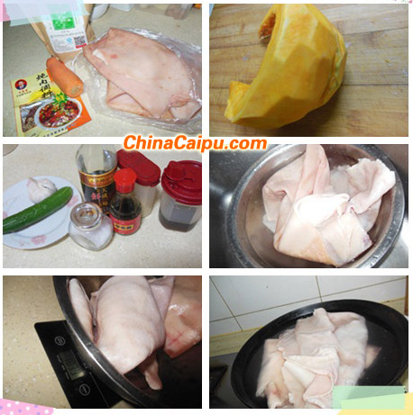 豬肉皮800克,清水2400克(肉皮和水的比例1:4),胡
