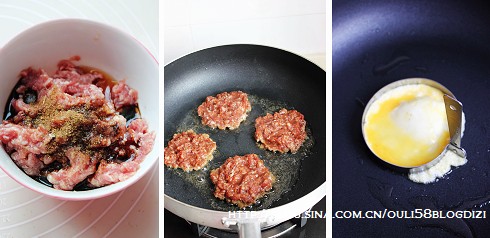 平底鍋放少許油,將肉餡在手掌中團(tuán)成