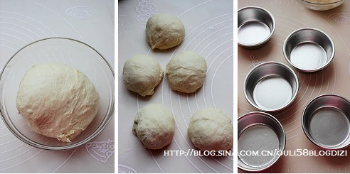 2、取出分成5個(gè)小面團(tuán),揉成圓形;