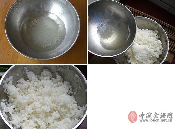 米飯中,充分攪拌均勻使得米粒散開