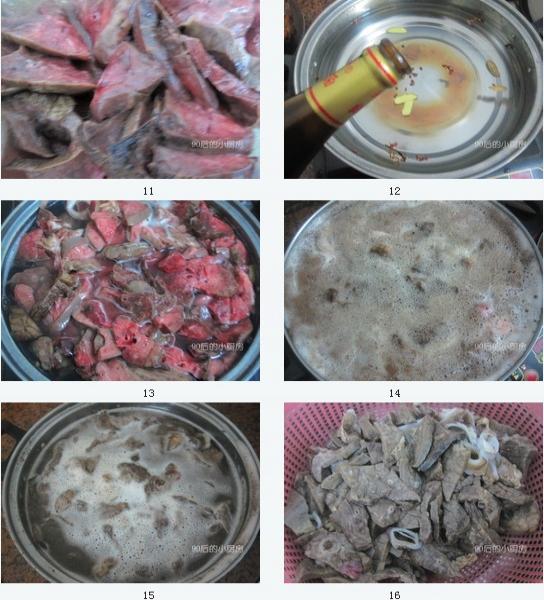 3、第三步中豬肺要冷水下鍋,慢慢隨著水溫的升高將豬肺里剩余的臟東西煮出,開鍋后煮一會兒就可以馬上過清水撈出了,這樣才能保證豬肺的口感。加入花椒生姜料酒可以去腥。