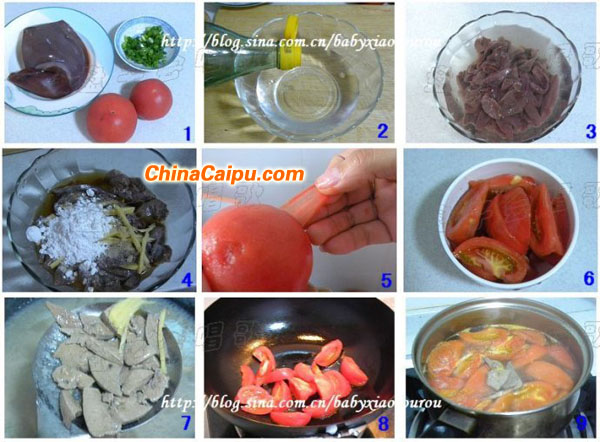 豬肝1塊,番茄2個(gè),蔥末適量