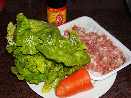 材料:生菜1棵(約210克),肉末250克,李錦記財(cái)神蠔油35ml,胡