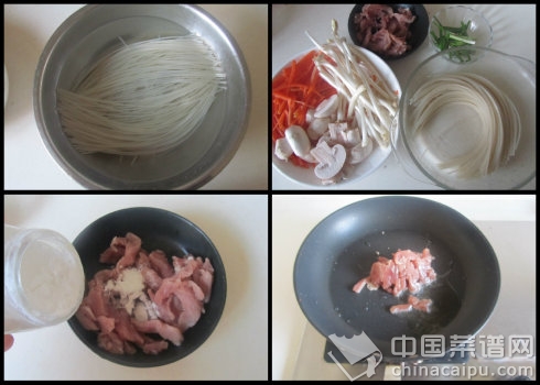 2. 準(zhǔn)備好其它配菜:肉絲、花生芽、