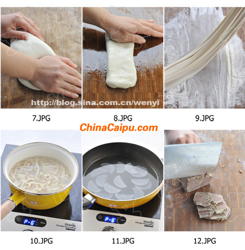 6、燒一鍋清水,水開后放入面條,水開兩次后,撈出面條,瀝干水份。