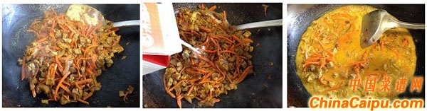 4、炒勻,加約100毫升牛奶,再加熱水至完全沒過所有