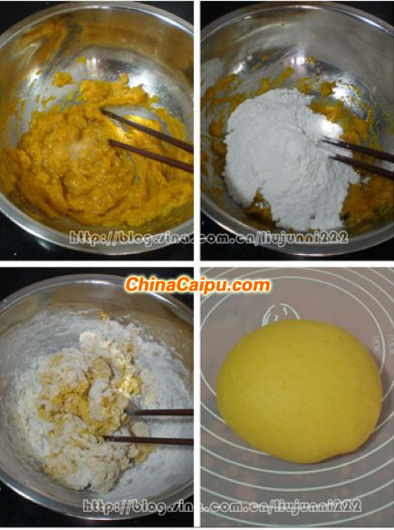 1.南瓜面團中面粉的具體用量最終要根據(jù)南瓜泥中的水分含量來決定;可根據(jù)實情況酌量加減;