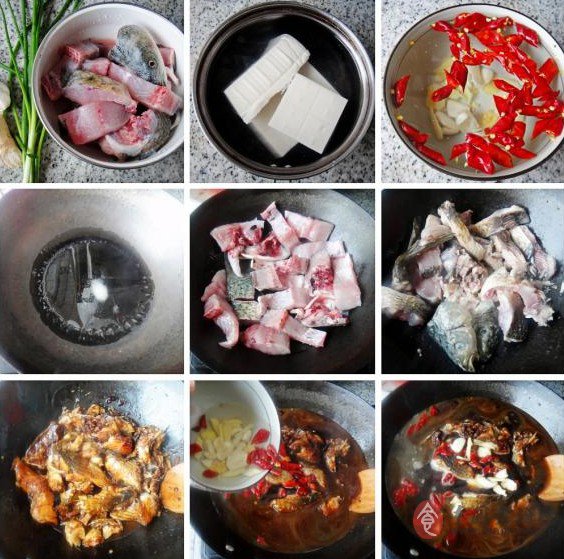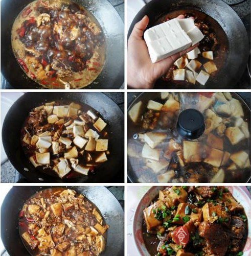 7、輕輕將豆腐和魚(yú)拌勻,蓋上蓋子中小火燒20分鐘。最后大火收一下湯汁,不要收干,