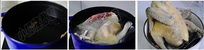 1、找一個能容下一只雞的大鍋,里面放半鍋水,煮開。