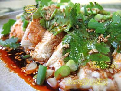 ??? 將醬油,鹽,糖,醋混合兩勺紅油,攪拌均勻后,淋在雞肉上面。根據(jù)你自己的口味,可以配一些香菜,香蔥,芝麻。如果沒(méi)有,不加也行!