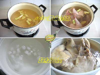 ??? 煮好的雞要立刻放到?jīng)鲩_(kāi)水里,最好是冰開(kāi)水里激一下。這樣皮質(zhì)細(xì)膩緊滑,脆脆的不容易散爛。