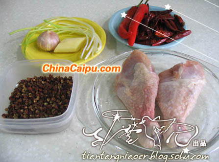 1:將雞腿去骨切2-3cm的丁,加入鹽和料酒腌制20分鐘左右。在腌制的過(guò)程中把姜、蒜切片,小蔥切段,紅尖椒切小圈,干紅椒切段。