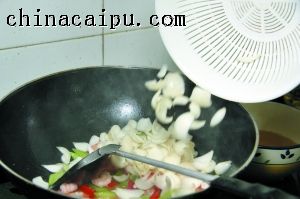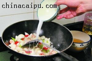 6 接著倒入鮮百合,與鍋內(nèi)