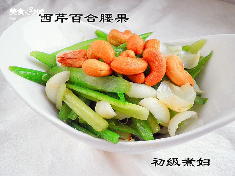 西芹百合腰果材料:西芹,百合,腰果,鹽。