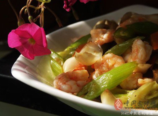 原料:西芹、百合、蝦仁、