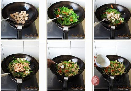 8、依次下入蝦仁和百合翻炒均勻;