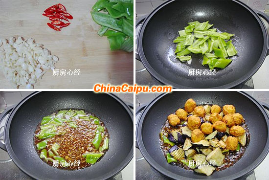 09.順序:一定先放料汁,后放茄子;土豆丸子,否則土豆丸子易碎,茄子容易塌秧。