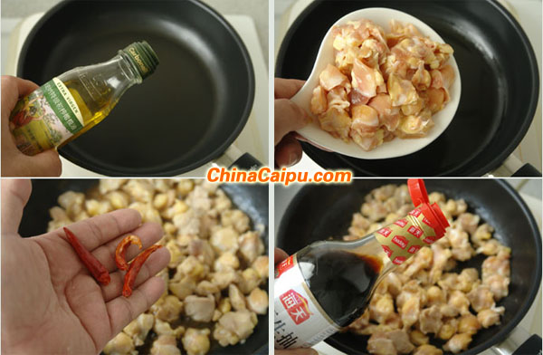 1.鍋子燒熱加入一大勺橄欖油,導入雞脆骨,中火翻炒至雞脆骨變白后加入辣椒與少許生抽轉(zhuǎn)大活,炒至表面微微有些焦的感覺。