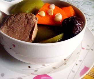3、清水1800ml放入湯煲里,待水滾后再將所有材料放入,以大火煮開,轉(zhuǎn)為小火,再煮兩個(gè)小時(shí),放鹽調(diào)味即可。