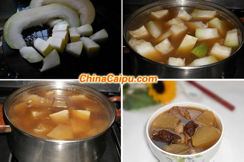 6. 把冬瓜塊放入湯里繼續(xù)煲1個(gè)小時(shí)。
