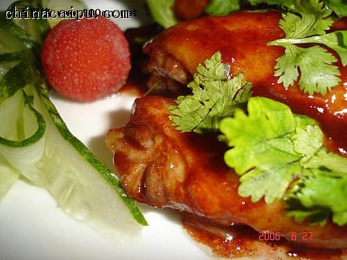 用料:雞翅。把大小臂分斬開。 蔥、姜、蒜切大塊,大段。糖、料酒。腐乳汁。
