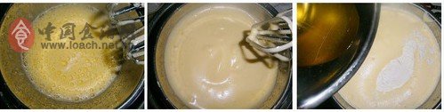 2.全蛋加細砂糖用攪拌機攪打,速度由慢而快顏色會由深慢慢變淺;
