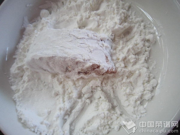2.腌好的魚(yú)裹上一層薄薄的玉米淀粉