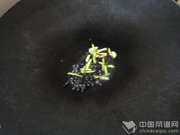 5.熱油鍋下豆豉、蔥、姜、蒜煸出香味