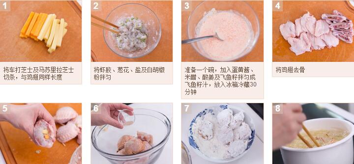 芝士釀雞翼配飛魚籽汁的做法: