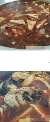 3. 半個小時之后,辣味,麻味都熬制出來了,這時候先下魚頭,魚排,十分鐘之后再下魚片。魚片只需三四分鐘,就可以了,另外根據(jù)個人喜好,你也可以往里面加入一些配菜,比如豆腐干,米豆腐,苕粉等