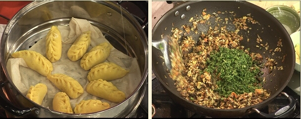 9.像包餃子一樣把餡料包進去上鍋蒸5分鐘就可以吃啦