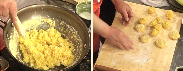 4.案板上用淀粉當薄面把在鍋中和好的玉米面揉好