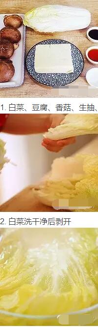 白菜豆腐卷的材料:白菜1顆,豆腐1塊,香菇8個(gè),生抽一勺,香油半勺,鹽1茶匙