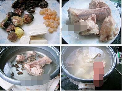 燙嘴豆腐的材料:筒骨,海鮮干貨,豆腐,青蛾